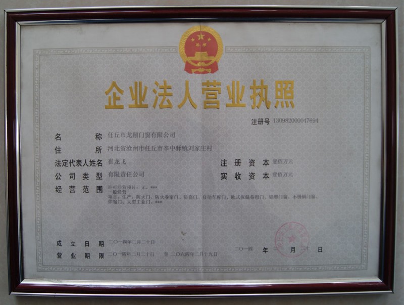 一般经营项目,生产:防火门、防火卷帘门、防盗门、自动车库门、欧式保温卷帘门、铝塑门窗、不锈钢门窗、伸缩门、大型工业门。***